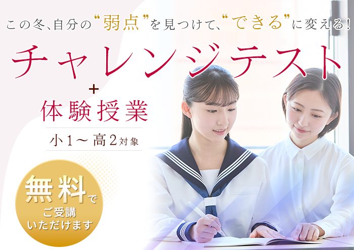 個別館では、「弱点発見」と「課題克服」を目的とした【チャレンジテスト】を、無料で実施しています。