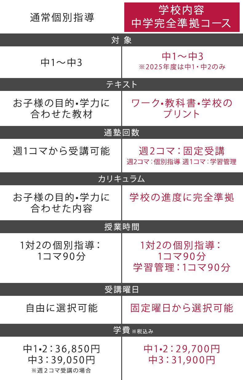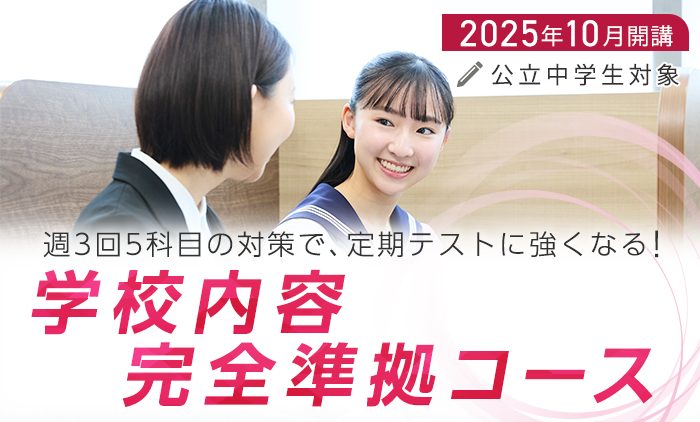 そんな悩みを持つ中学生のために生まれたのが、学校内容完全準拠コースです。