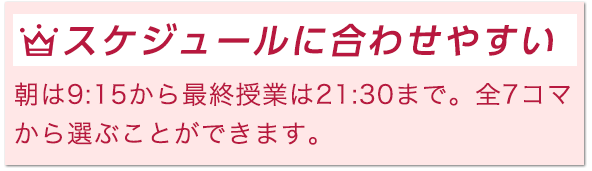 部活や習い事などの予定に合わせて、柔軟に通塾日程を調整しています。また、授業前までにお申し出いただければ振替授業が可能なため、「体調不良で休んで授業についていけなくなる」といった心配もありません。忙しい中でも通いやすいと、皆さまからご好評をいただいています。